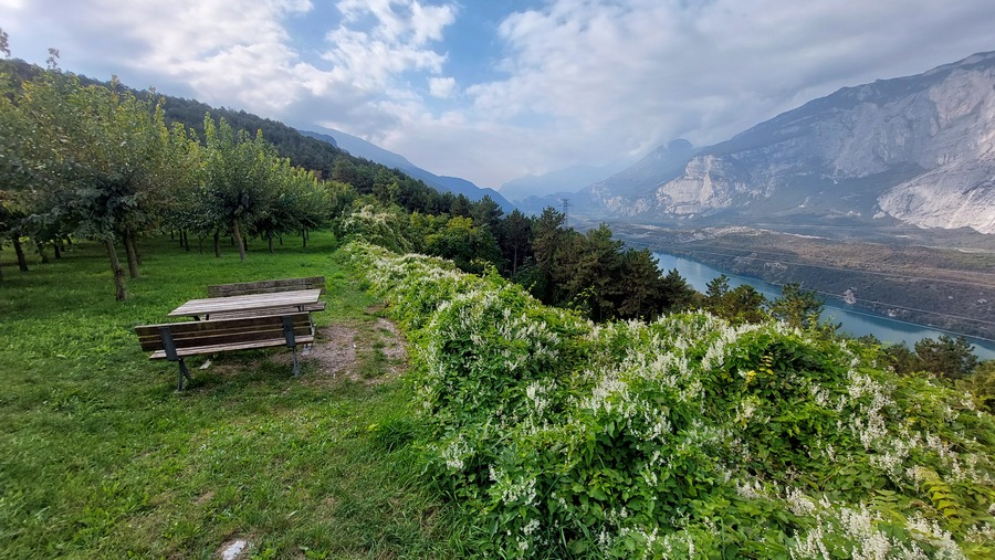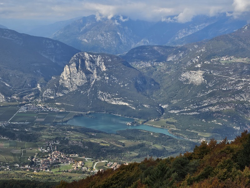 Auf dem Weg zum Monte Bondone: Blick auf den Lago di Toblino. Hier warten wir bis die ersten Wolken verschwunden sind. Nun haben wir einen wunderbaren Blick.
